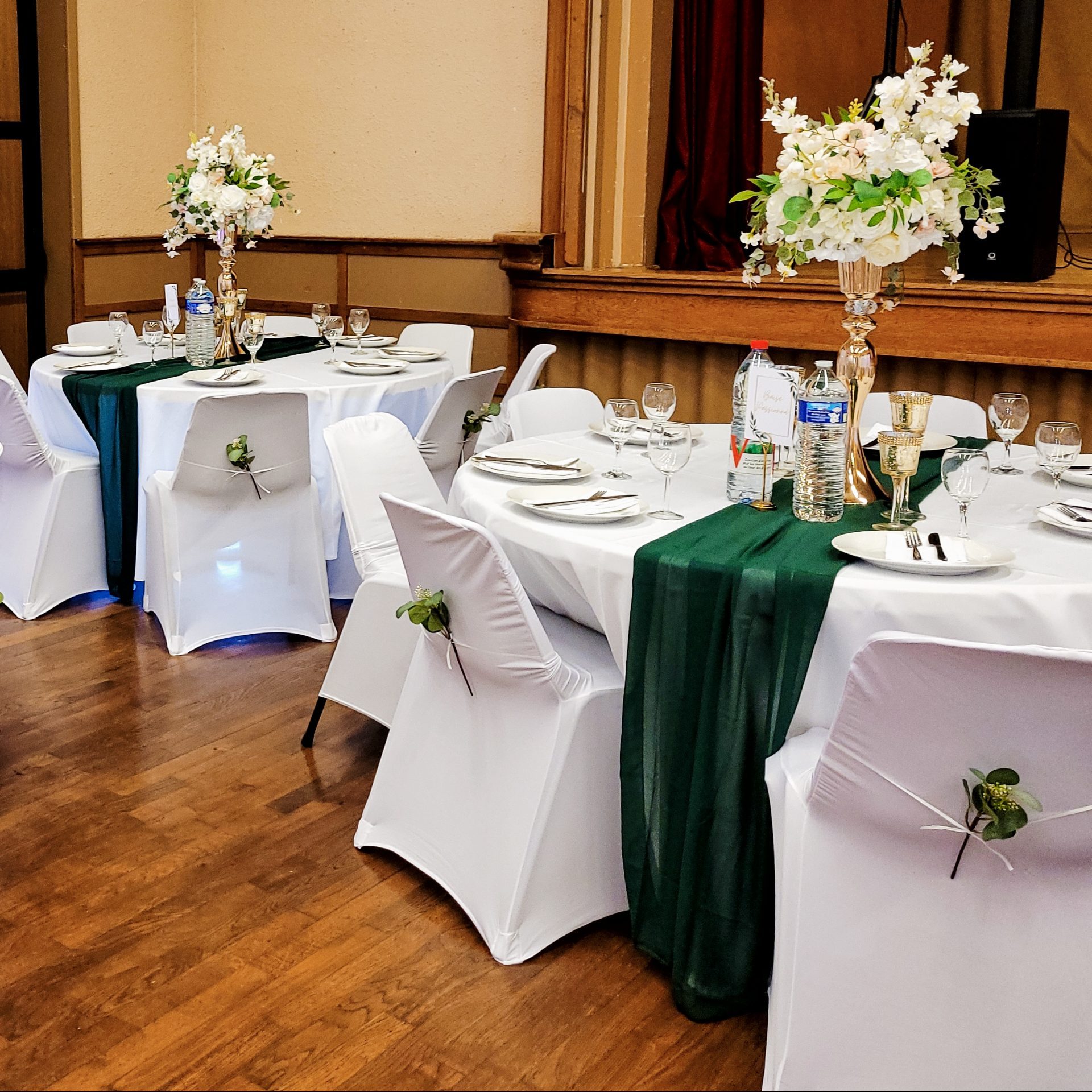 Le chemin de table en mousseline de couleur rose poudré donne un effet léger et romantique à votre table.